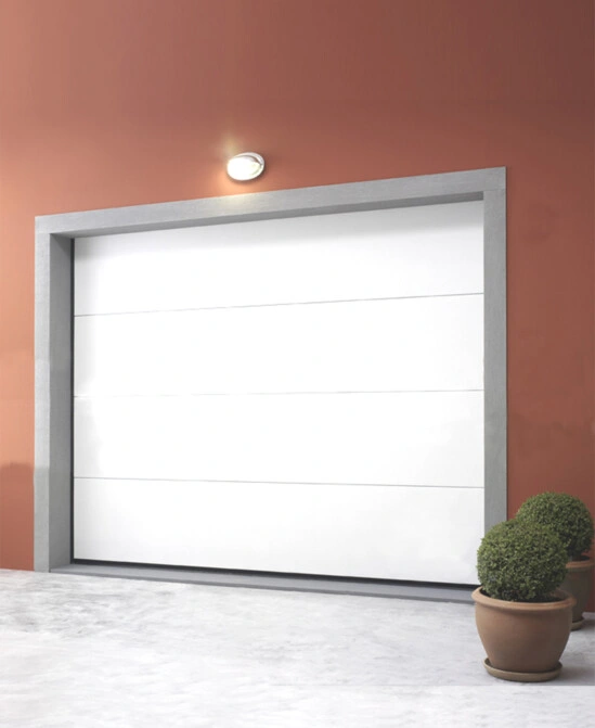 Puertas seccionales hecha de paneles horizontales, conectados con bisagras que se deslizan verticalmente hasta que están paralelos al techo, cuando está completamente abierto. Este sistema en particular permite el uso de toda la superficie interna del garaje, no implica ninguna pérdida externa de espacio, es fácil de activar y garantiza un excelente aislamiento térmico acústico. La estructura mecánica hecha de acero galvanizado, así como la cubierta hecha de láminas de acero con una base de poliéster de alta calidad, garantiza la mejor protección contra la intemperie, al tiempo que evita la oxidación. Disponibles hasta boquetes de 6 metros de ancho.