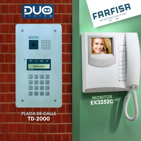 - Hasta 2 cámaras, 2 monitores y 2 citófonos