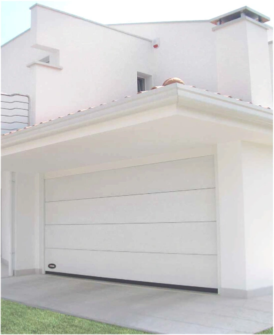 Puertas seccionales hecha de paneles horizontales, conectados con bisagras que se deslizan verticalmente hasta que están paralelos al techo, cuando está completamente abierto. Este sistema en particular permite el uso de toda la superficie interna del garaje, no implica ninguna pérdida externa de espacio, es fácil de activar y garantiza un excelente aislamiento térmico acústico. La estructura mecánica hecha de acero galvanizado, así como la cubierta hecha de láminas de acero con una base de poliéster de alta calidad, garantiza la mejor protección contra la intemperie, al tiempo que evita la oxidación. Disponibles hasta boquetes de 6 metros de ancho.