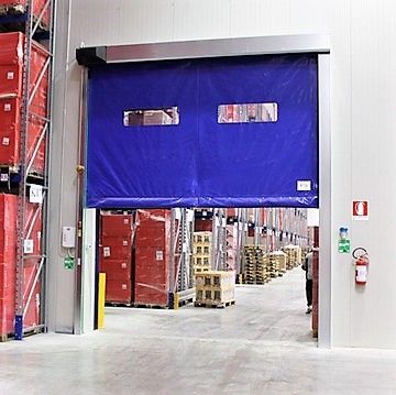 Puerta rápida enrollable para uso muy intenso dotada del especial e innovador sistema de autorreparación.